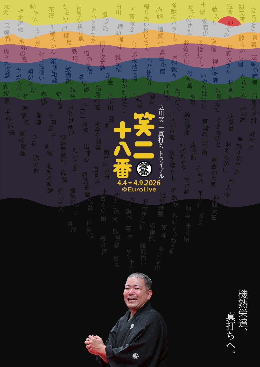 ・お問合せ 夢空間 0570-06-6600- 4月4日(土)~9日(木)全6日間「立川笑二真打トライアル~笑二十八番~」/東京・渋谷