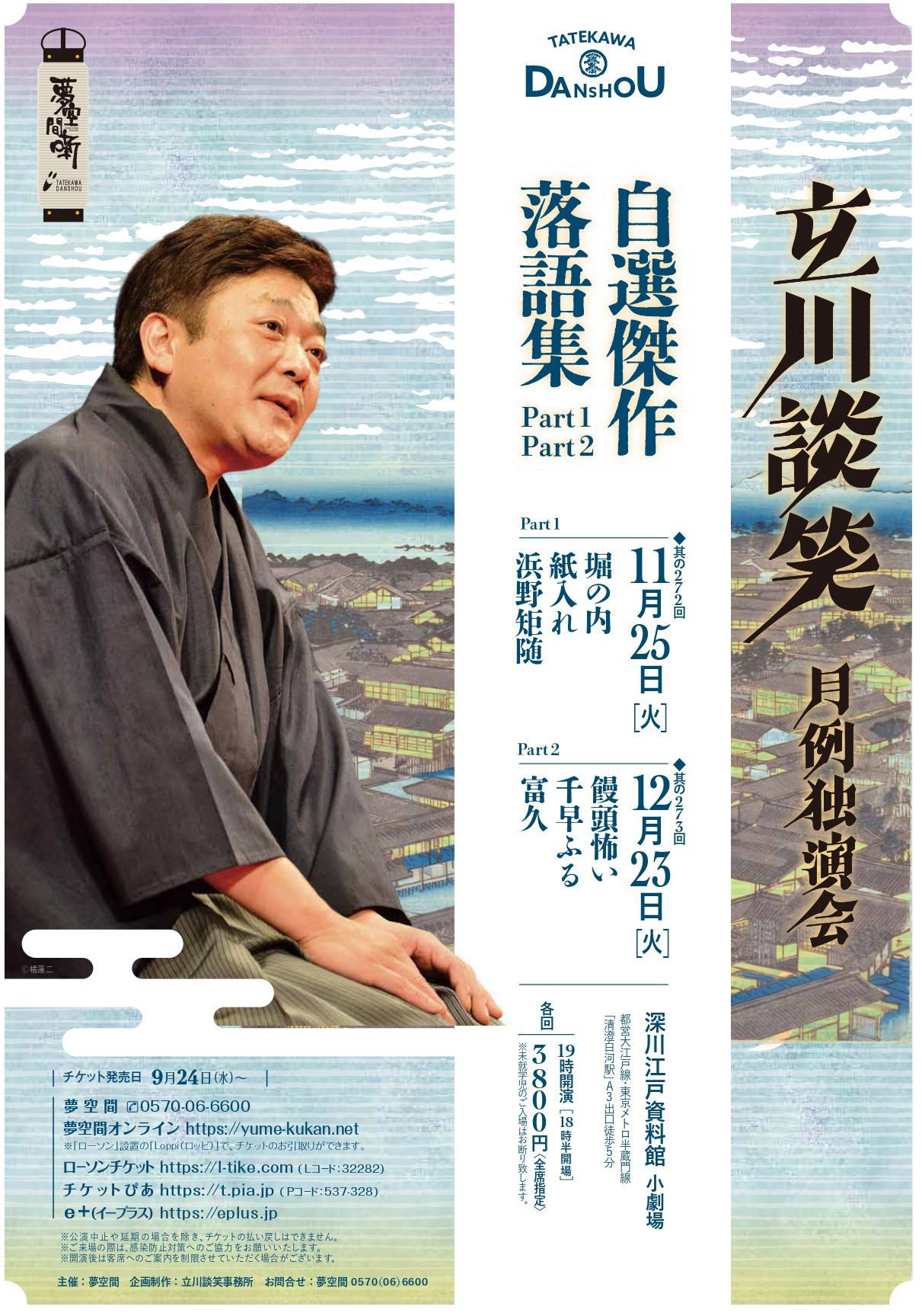 ・お問合せ 大田区民プラザ 03-3750-1555- 10月31日(金)「立川談笑 月例独演会 其の271」/東京・清澄白河